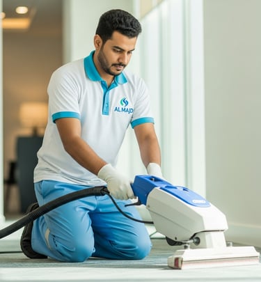مع المجد، تقدر ترتاح وتخلي عناء التنظيف علينا، لأننا نؤمن إن النظافة جزء أساسي من الراحة والصحة والجمال.